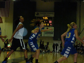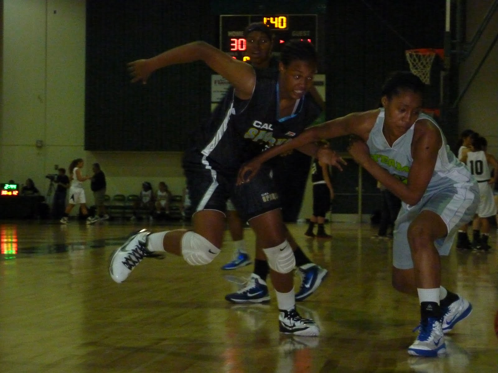 Mercedes Russell (left) watches her shot fall against the Stockton Mustangs.