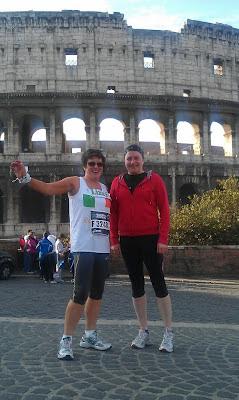 Turns out multi-tasking – running, talking and sight-seeing – doesn’t always work. She took a tumble at the Circo Massimo and finished the race with blood and tissue all over her face. But she did finish, leaving 131 runners trailing behind her … out of 12,679.